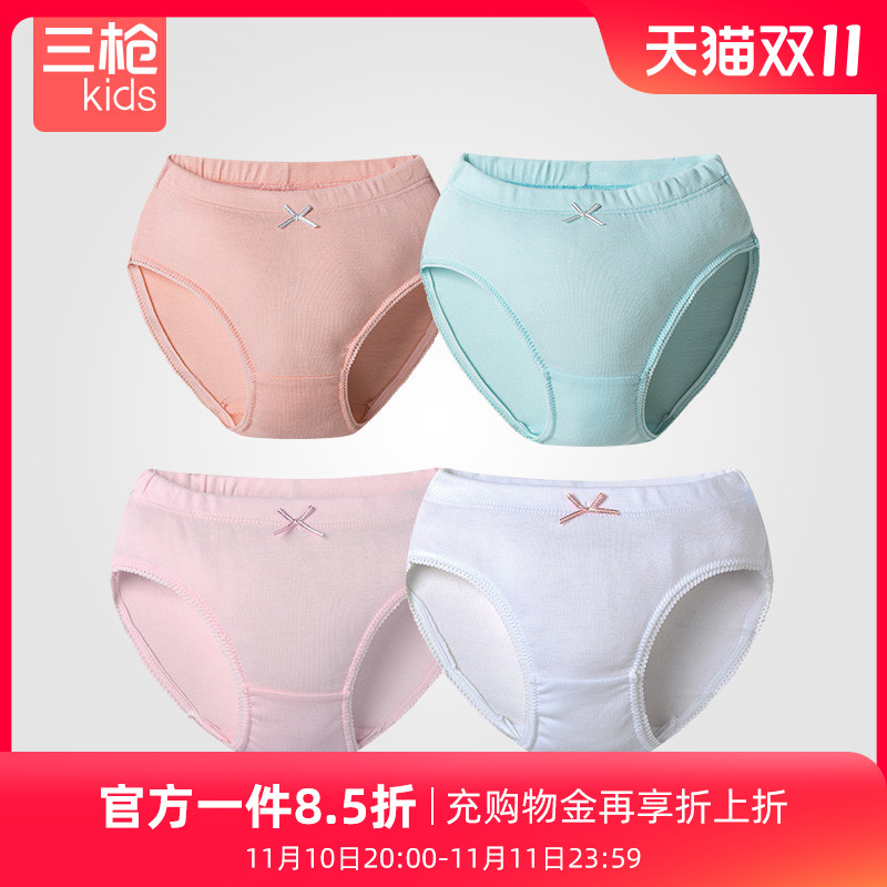 【产品名称:三枪女童内裤女孩纯棉三角内裤舒肤棉罗纹弹力女童三角裤】