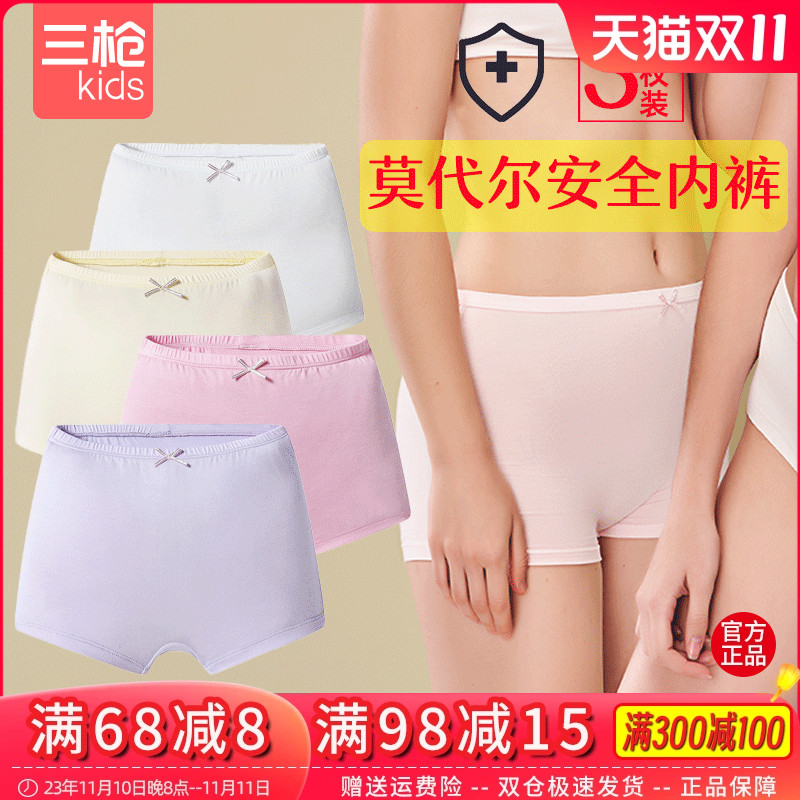 【产品名称:[2/3/4条装]三枪儿童莫代尔女平三角裤中大女孩四角短裤透气内裤】