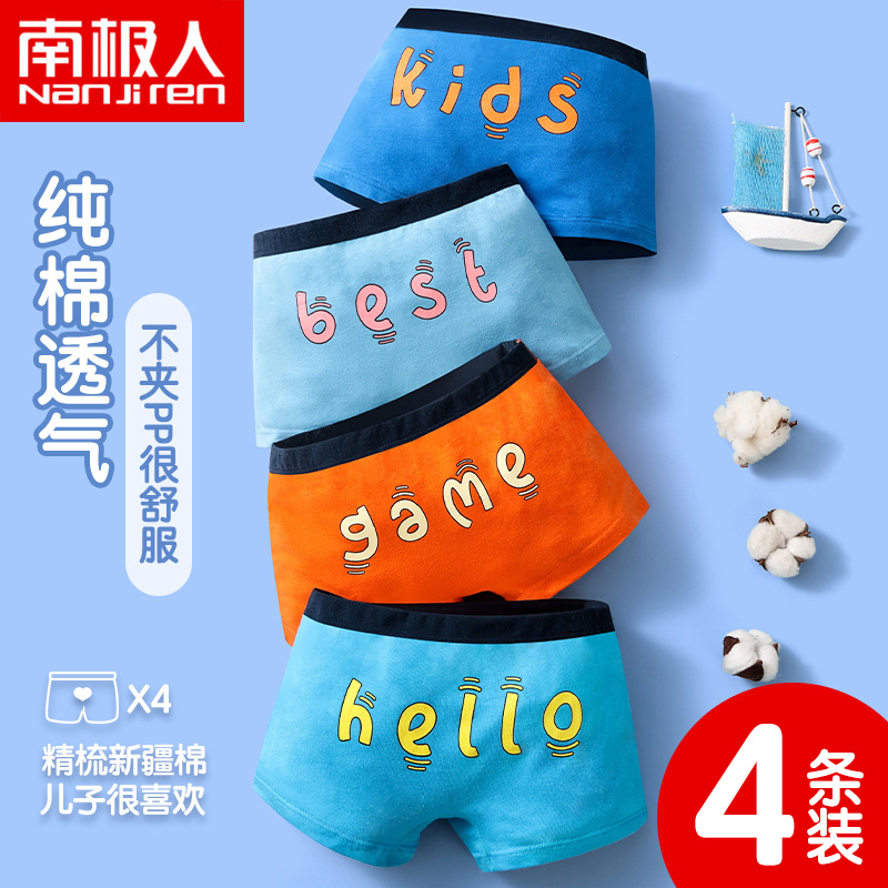 【产品名称:南极人纯棉儿童内裤男童孩透气抗菌裆小中大童不夹屁屁平角底裤头】