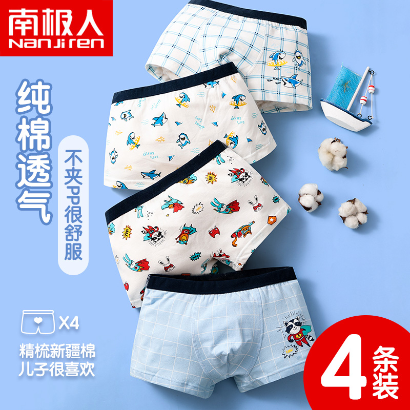 【产品名称:南极人儿童内裤男童纯棉抗菌平角宝宝小中大童不夹pp四角短裤头】