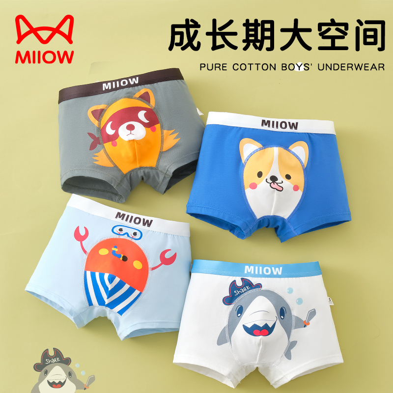 【产品名称:猫人男童内裤儿童纯棉平角裤四角男孩100%男宝宝全棉大童底裤短裤】