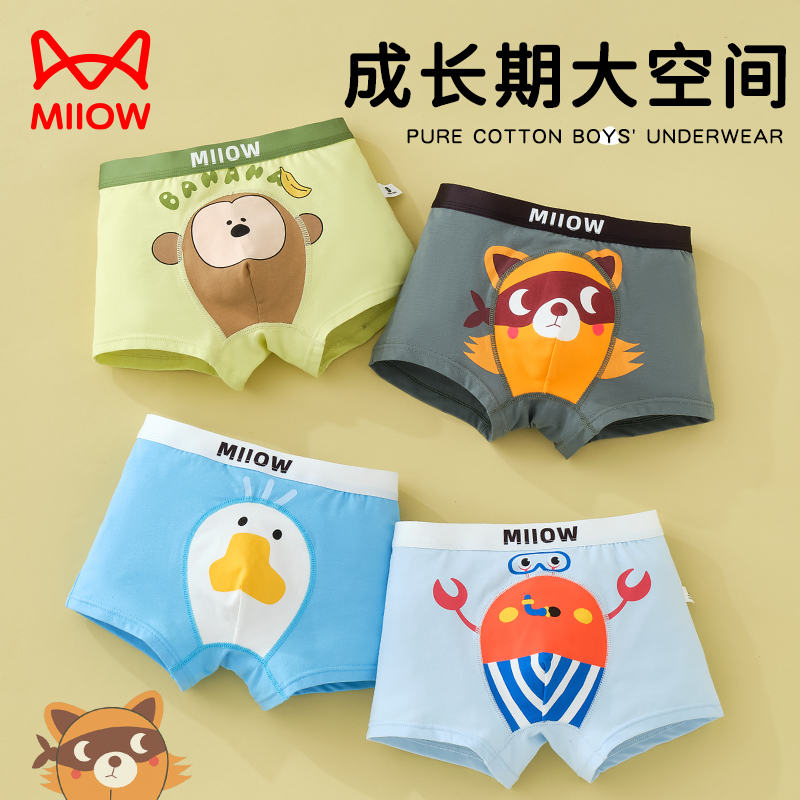 【产品名称:猫人男童内裤儿童纯棉平角裤四角男孩100%男宝宝全棉大童底裤短裤】