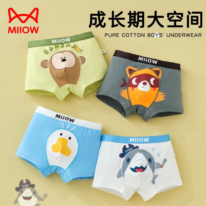 猫人男童内裤儿童纯棉平角裤四角男孩100%男宝宝全棉大童底裤短裤