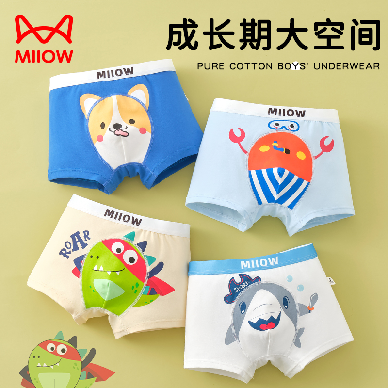 【产品名称:猫人男童内裤儿童纯棉平角裤四角男孩100%男宝宝全棉大童底裤短裤】