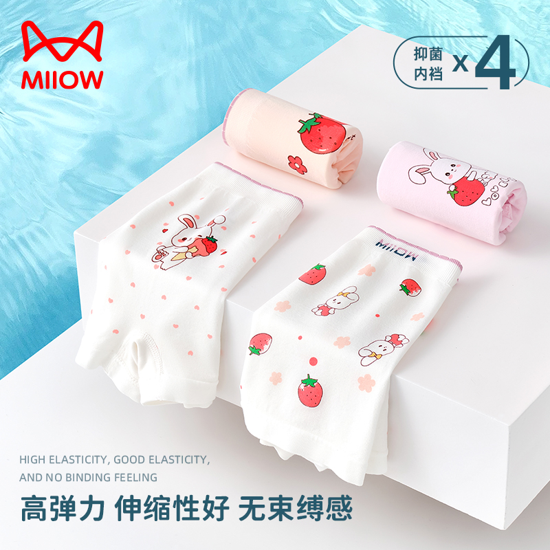 【产品名称:猫人儿童内裤女童莫代尔夏季薄款平角四角女孩冰丝无痕短裤中大童】