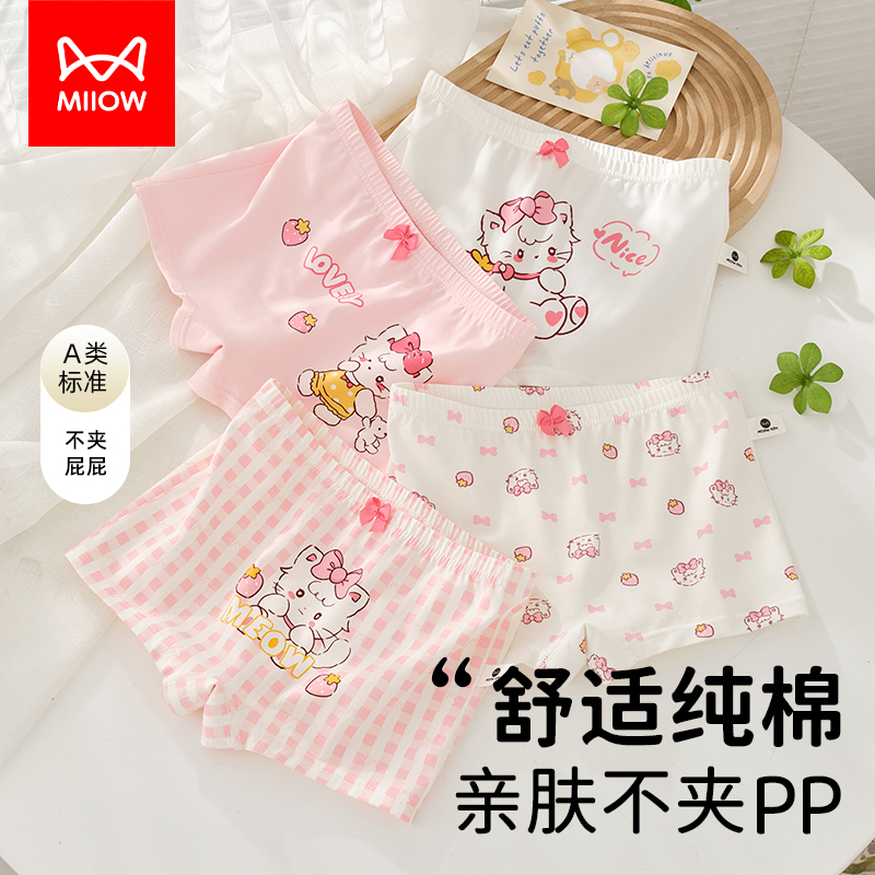 【产品名称:猫人儿童内裤女童纯棉平角小女孩四角宝宝小童中大童全棉100%短裤】