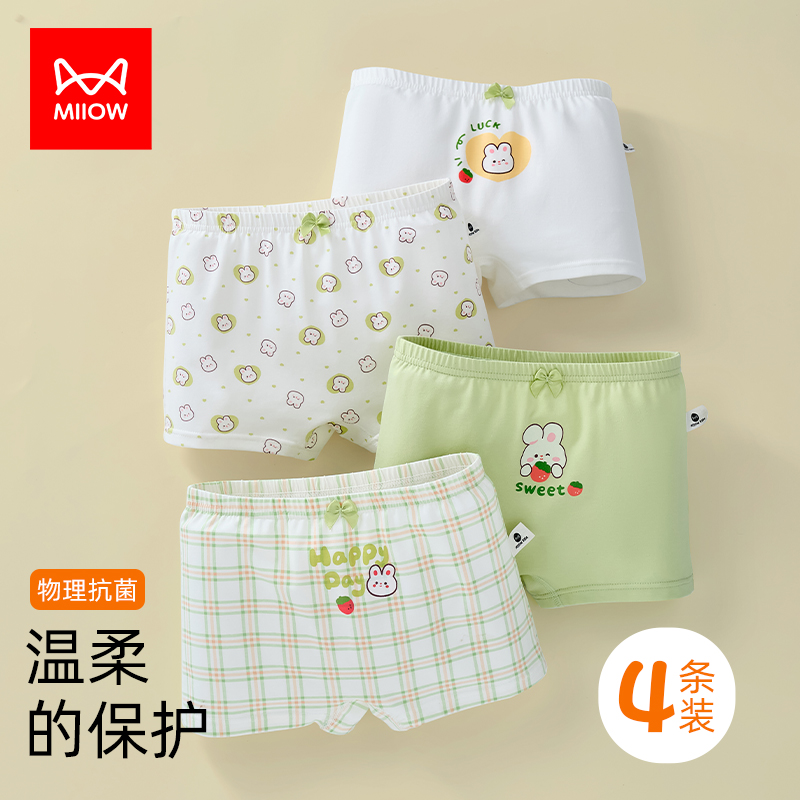 【产品名称:猫人儿童内裤女童纯棉平角小女孩四角宝宝小童中大童全棉100%短裤】
