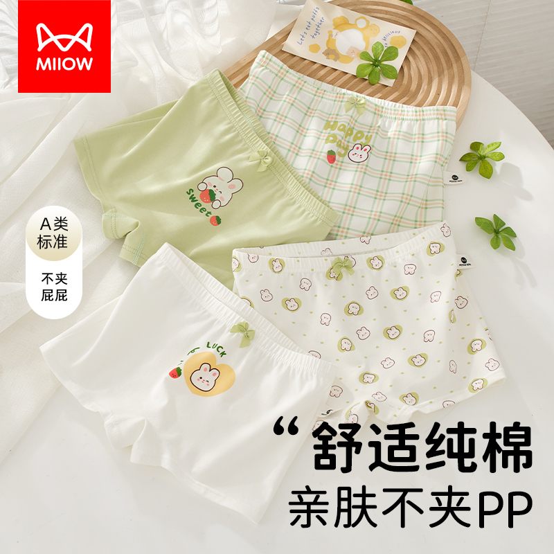 【产品名称:猫人儿童内裤女童纯棉平角小女孩四角宝宝小童中大童全棉100%短裤】