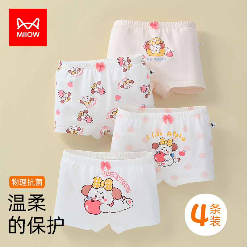 【产品名称:猫人儿童内裤女童纯棉平角小女孩四角宝宝小童中大童全棉100%短裤】