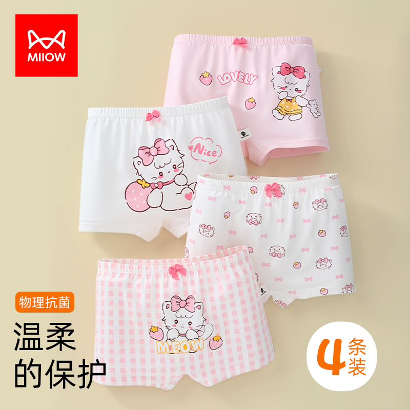 【产品名称:猫人儿童内裤女童纯棉平角小女孩四角宝宝小童中大童全棉100%短裤】
