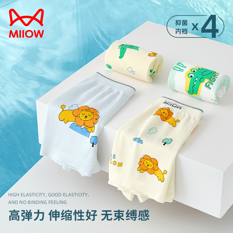 【产品名称:猫人儿童内裤男童莫代尔夏季薄款平角四角男孩冰丝无痕短裤中大童】
