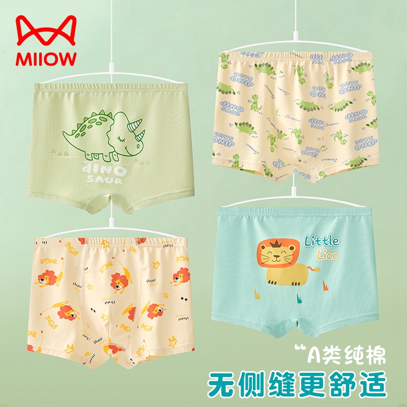 【产品名称:猫人男童内裤儿童纯棉平角裤男孩四角短裤100%男宝宝大童全棉底裤】