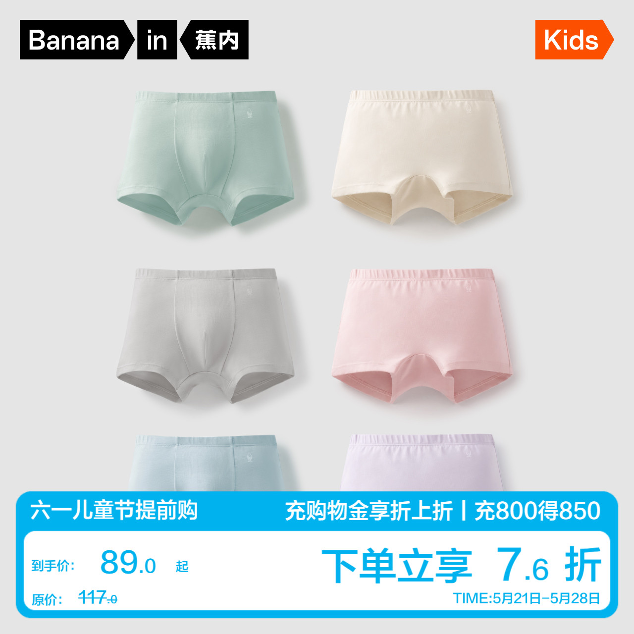 【产品名称:蕉内儿童莫代尔内裤501S男女童三角抑菌薄款透气平角短裤子3条装】