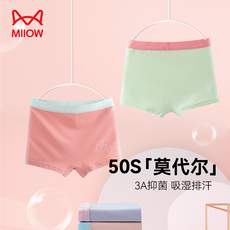 【产品名称:猫人儿童内裤女童莫代尔女宝宝防走光不夹屁屁小孩子抗菌四角平裤】