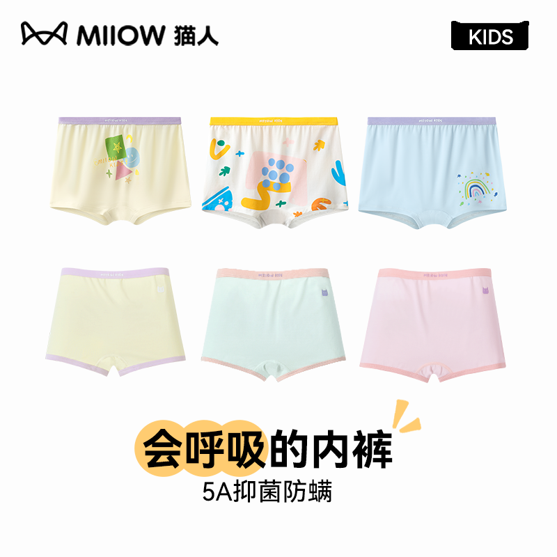 【产品名称:【香菇双11】猫人儿童内裤女莫代尔冰丝四角裤女童平角短裤中大童】