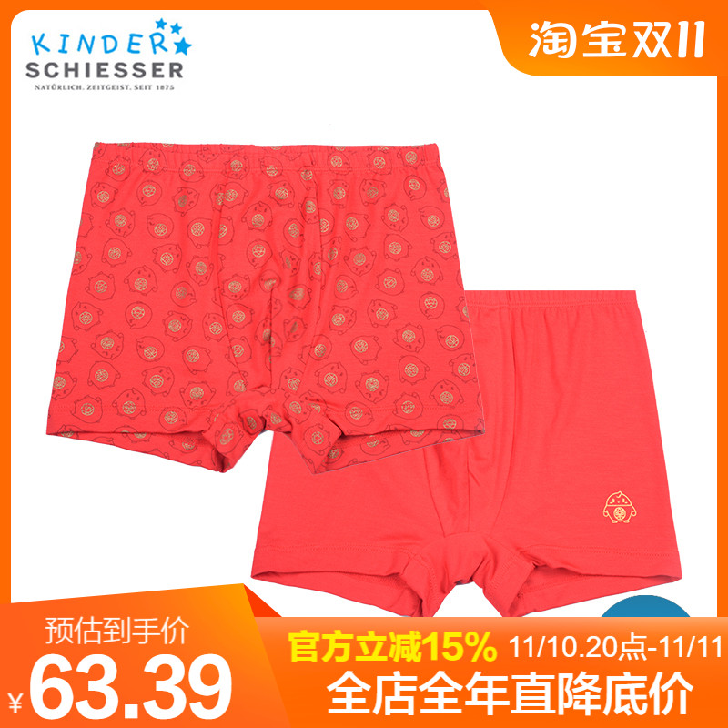 【产品名称:德国舒雅儿童内裤男童 2条装23秋冬新款22007T莫代尔大红色平角裤】