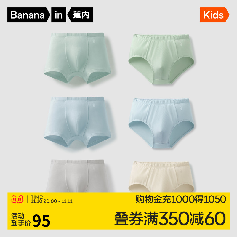 【产品名称:蕉内501S单向导湿儿童内裤男童小短裤纯棉抗菌裆宝宝平角底裤3件】