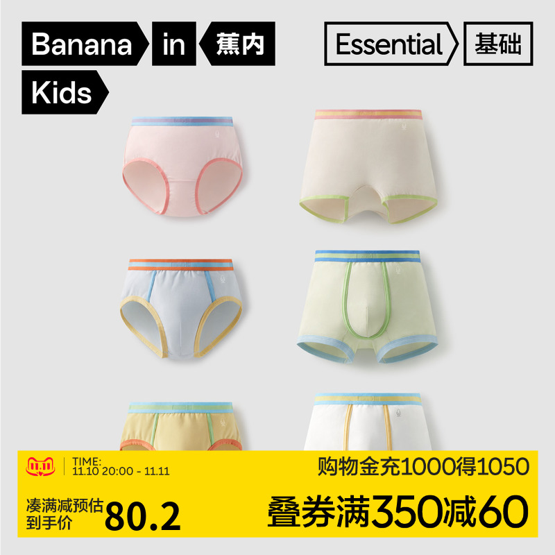 蕉内555C内裤男女童四角平角纯棉透气抗菌短裤发育期三角裤3条装