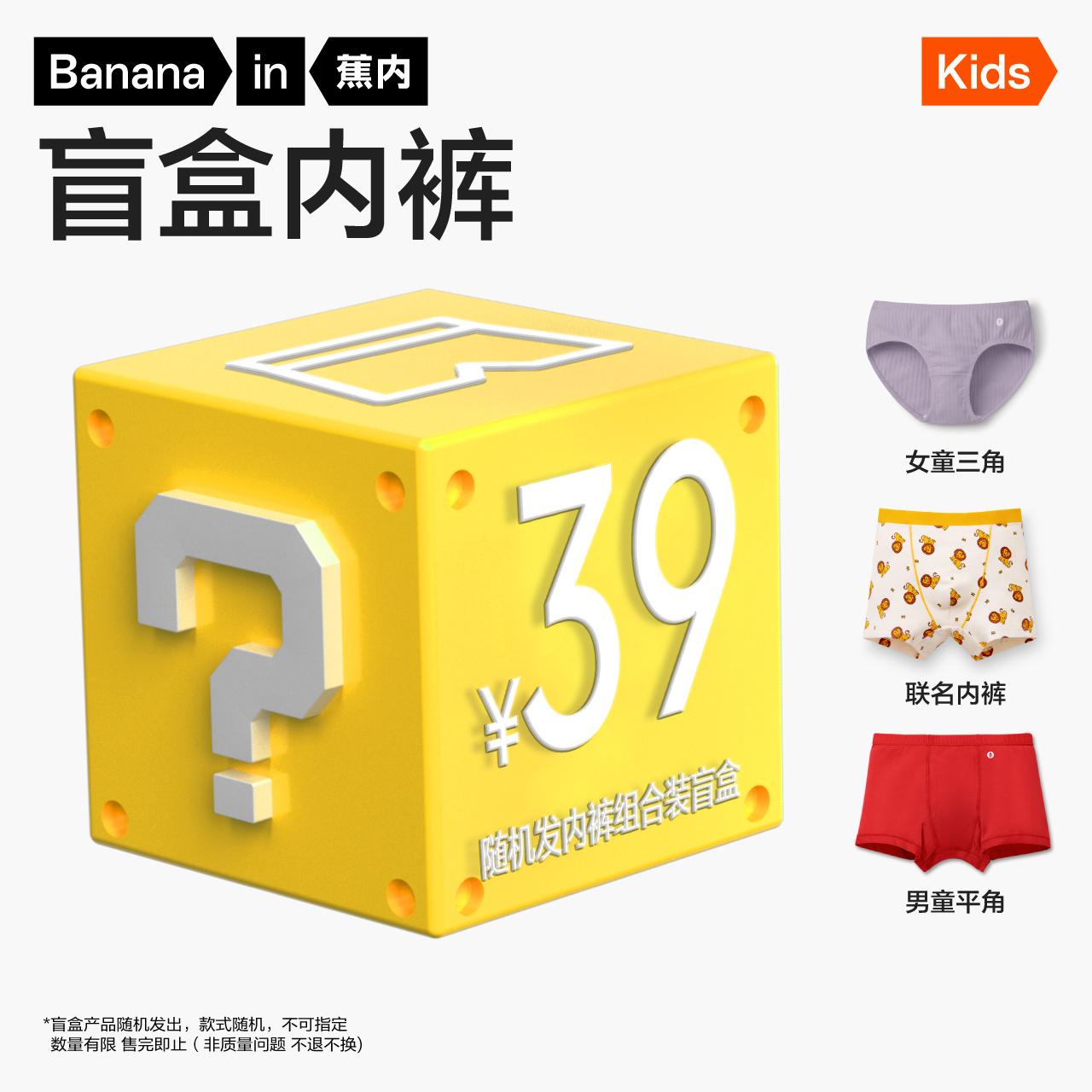 【产品名称:【会员秒杀】蕉内儿童平角三角内裤男女童盲盒(随机发2-3件装)】