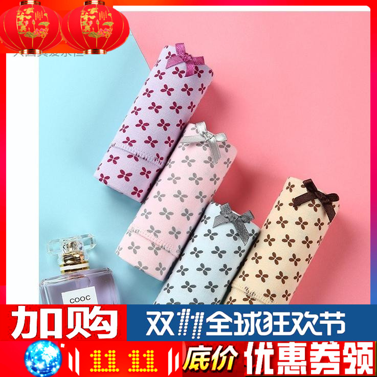 【产品名称:Deanfun/蝶安芬几何收腹弹力棉中高腰平角裤加大女士内裤】