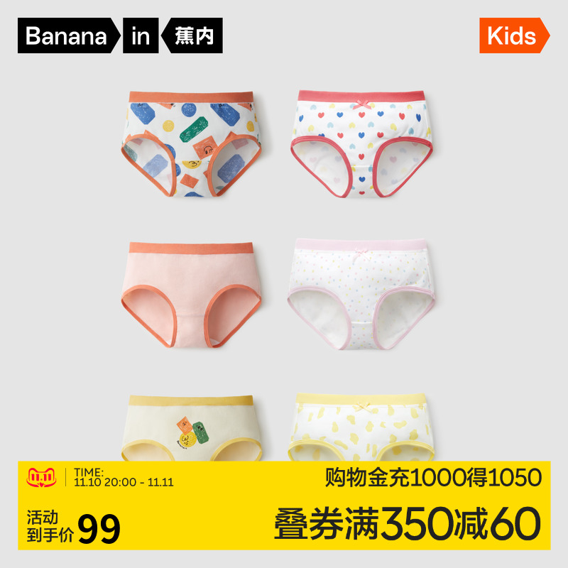 【产品名称:蕉内501C抗菌女童内裤儿童不夹pp短裤女宝宝纯棉裆印花三角裤3件】
