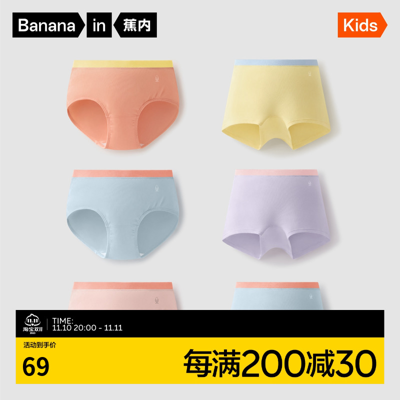 【产品名称:蕉内355C棉感女童内裤儿童抗菌三角裤女宝宝平角短裤女孩薄款3件】