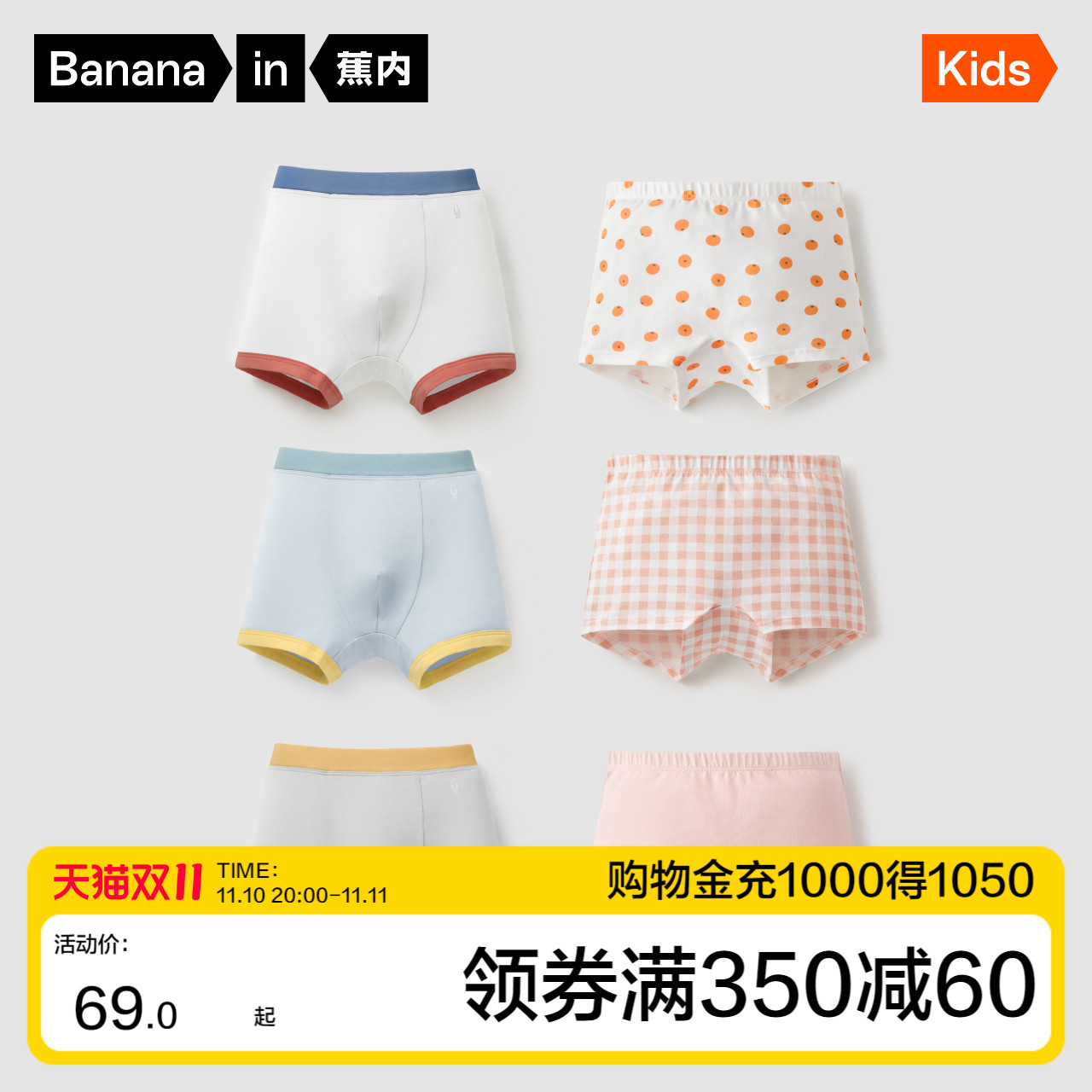 【产品名称:蕉内儿童内裤355C抗菌纯棉平角男女大童撞色宝宝三角内衣裤3件装】