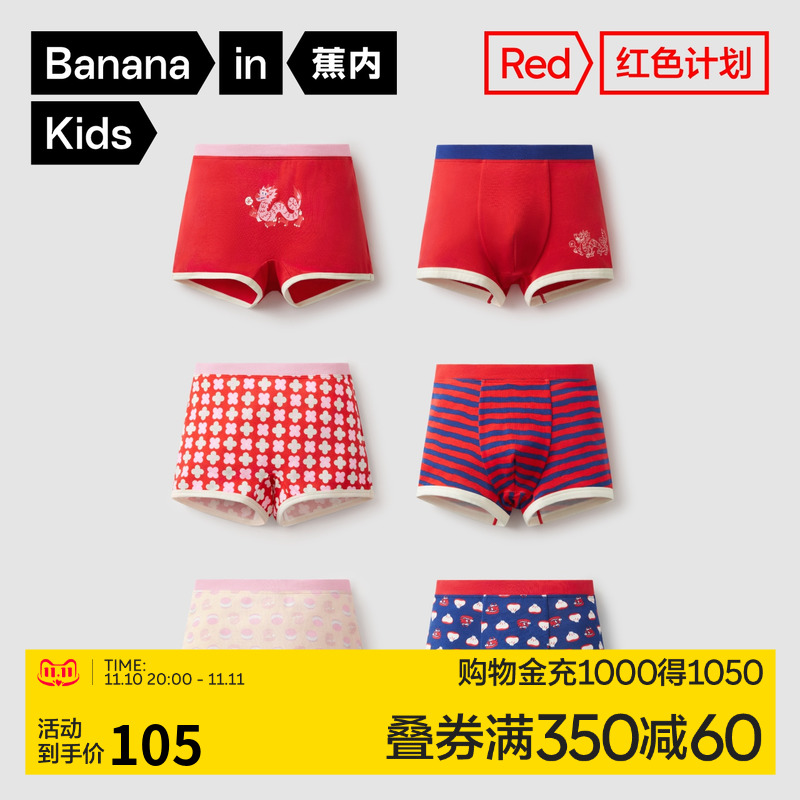 蕉内520C儿童红色计划基础图案男童喜庆女大童内裤宝宝3件装礼盒