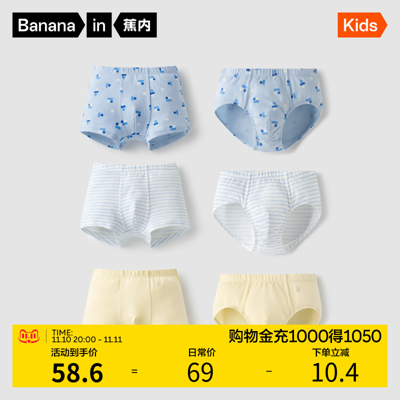 蕉内301C纯棉裆儿童内裤男童抗菌短裤男孩底裤宝宝平角裤大童三角