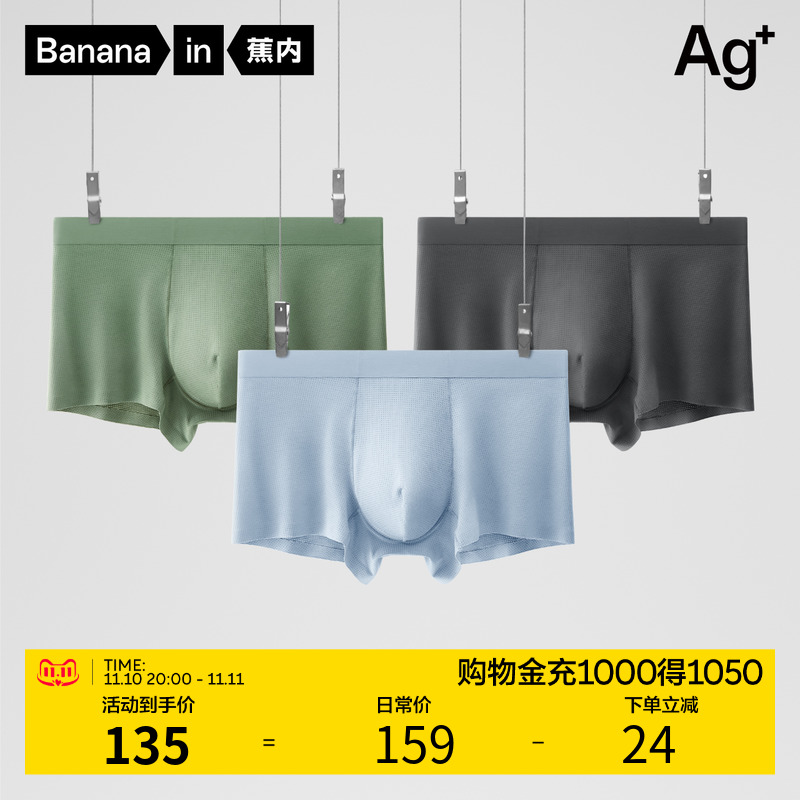 【产品名称:蕉内银皮500E男士内裤莫代尔四季平角抗菌防夹臀透气吸湿四角3件】