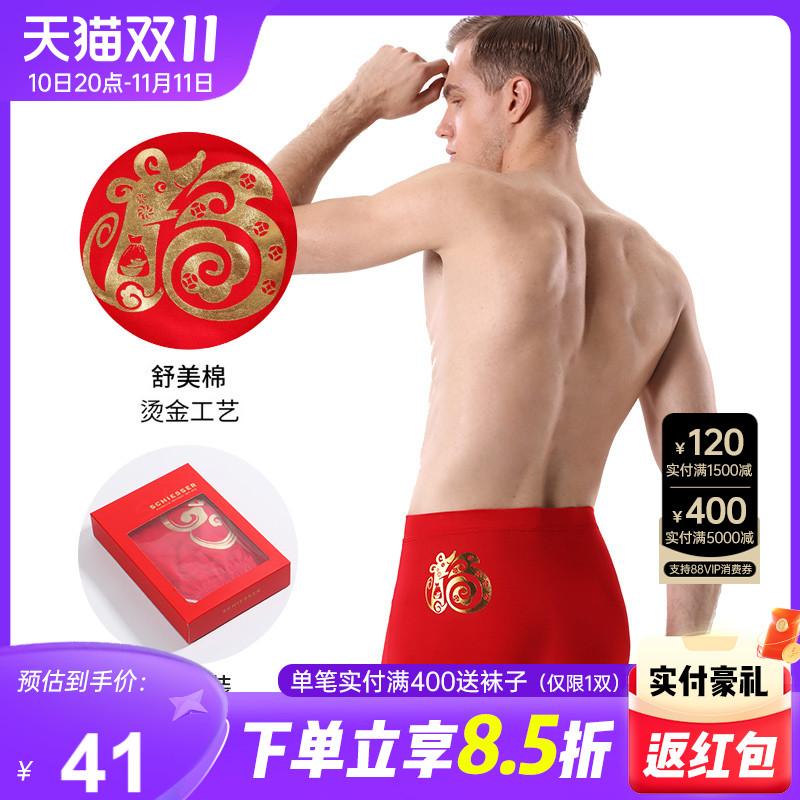 【产品名称:Schiesser舒雅男士内裤鼠年本命年生肖裤男结婚大红色中腰平角裤】
