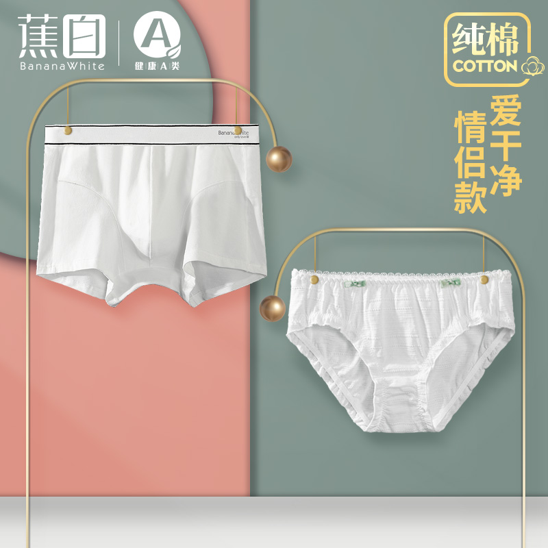 【产品名称:情侣内裤一男一女性感纯欲蕾丝日系白色女士纯棉三角裤男士平角裤】