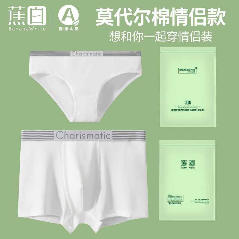 【产品名称:蕉白内裤情侣莫代尔棉平角一男一女夫妻实用礼物送老公男友四角裤】