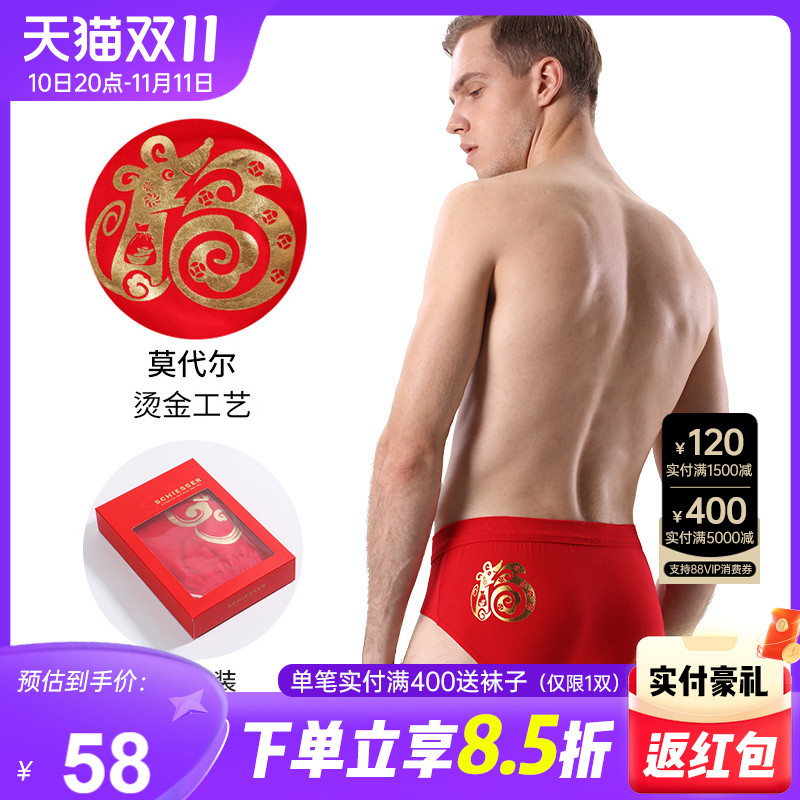 【产品名称:Schiesser舒雅内裤男士鼠年生肖裤红色本命年莫代尔中腰三角裤】