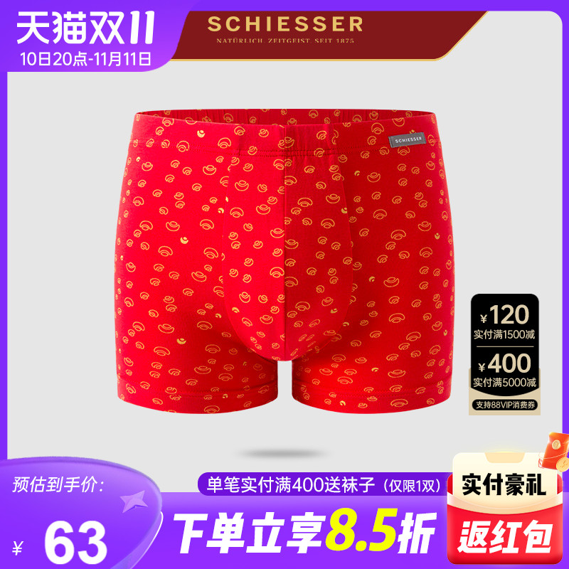 【产品名称:schiesser舒雅内裤男 新品兔年本命年大红色财富款透气棉质平角裤】