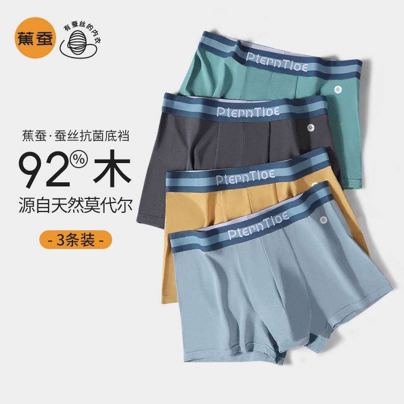 【产品名称:内裤男生宽松版冰丝莫代尔裸睡无感四角裤蚕丝抗菌底裆无痕平角裤】