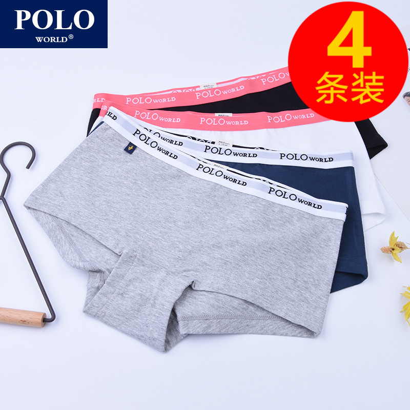【产品名称:polo新品4条装纯棉质中腰四角舒适无痕低腰纯色平角青年女士内裤】
