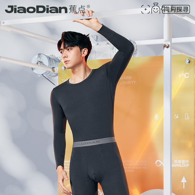 【产品名称:蕉点轻薄暖Air男士保暖套装纯棉秋衣秋裤无痕免穿内裤圆领打底】