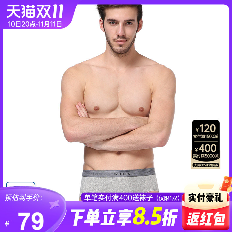 【产品名称:2条装Schiesser舒雅内裤男士纯色薄棉青年透气中腰三角裤大码短裤】