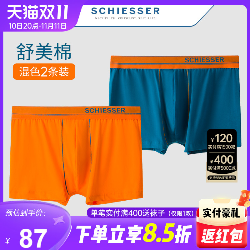 【产品名称:2条装舒雅内裤男士秋季薄款纯色棉质中腰男生短裤透气平角四角裤】