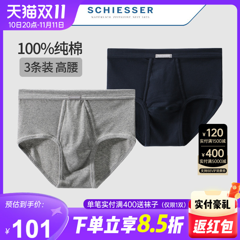 【产品名称:3条装Schiesser舒雅男士内裤纯棉三角裤高腰宽松偏大码中年短裤头】