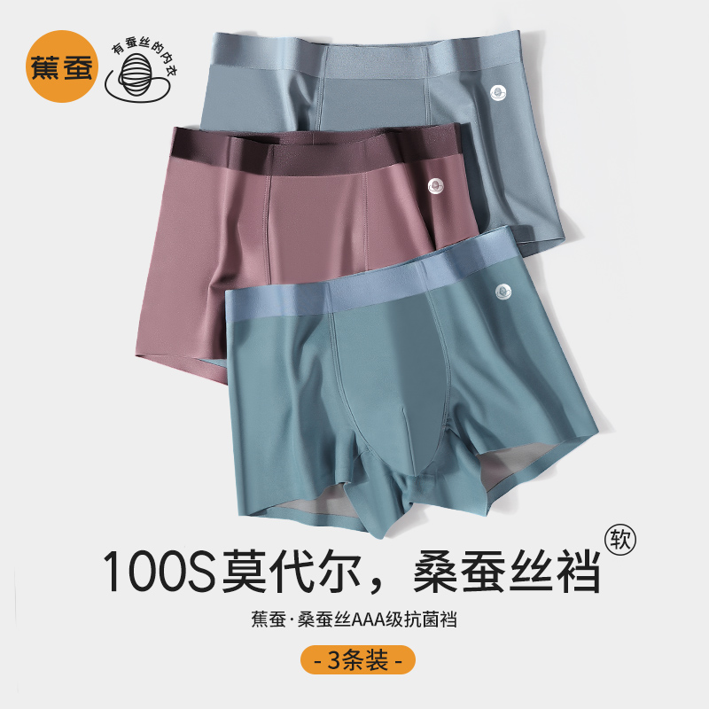 【产品名称:内裤男士四角冰丝宽松双面撞色0感透气莫代尔蚕丝抗菌裆平角短裤】