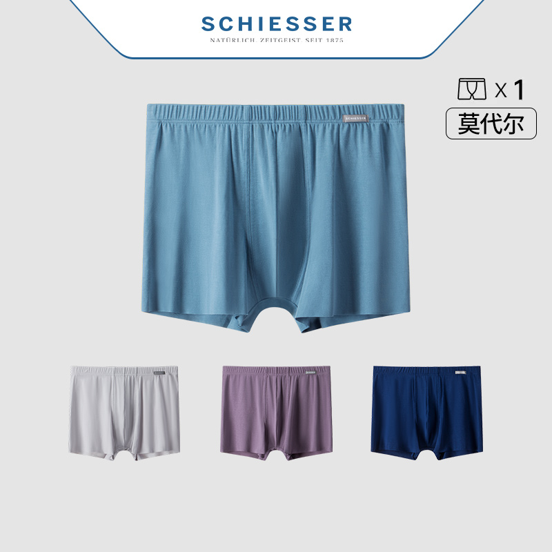 【产品名称:schiesser舒雅无痕内裤男士柔软透气抗菌莫代尔中腰青年平角短裤】