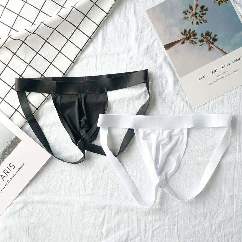 【产品名称:2条装男士性感丁字裤低腰夏季超薄款冰丝U凸舒适白色双丁内裤包邮】