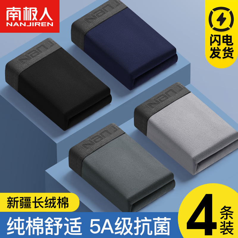 【产品名称:南极人4条装男士内裤纯棉透气平角裤青年潮四角裤韩版底裤短裤头】