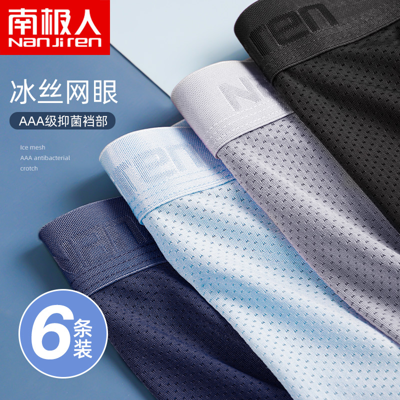 【产品名称:南极人冰丝抗菌内裤男夏季薄款网眼透气运动平角裤棉裆四角短裤衩】