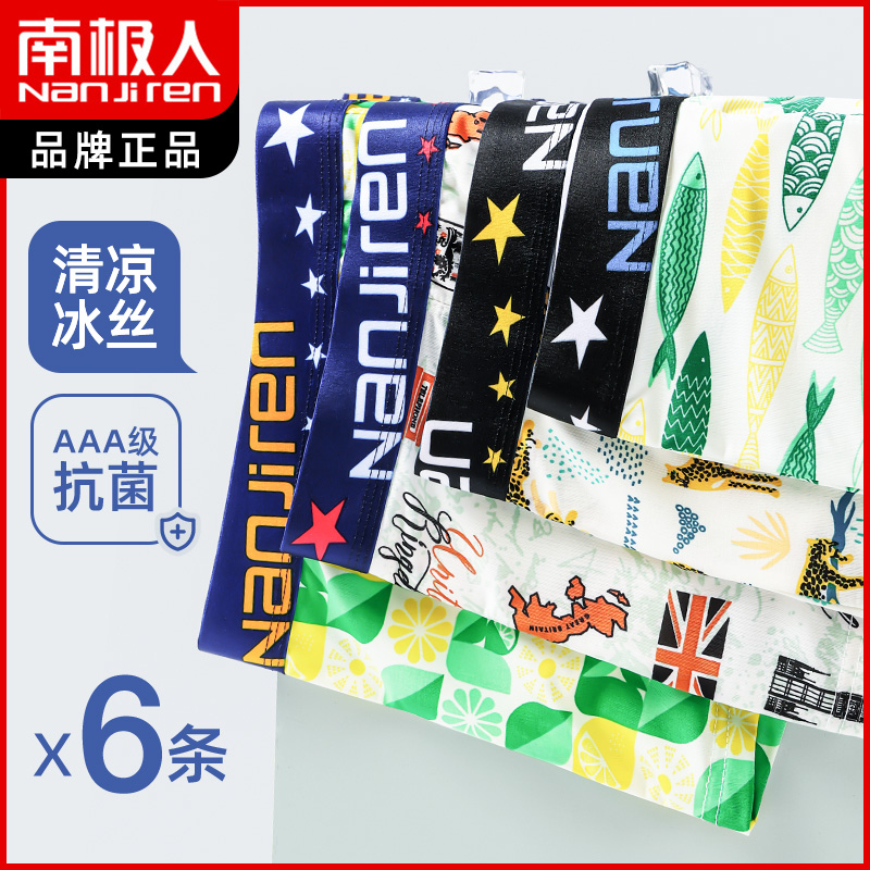 【产品名称:南极人冰丝抗菌无痕内裤男士夏薄款网眼透气平角印花棉裆四角底裤】