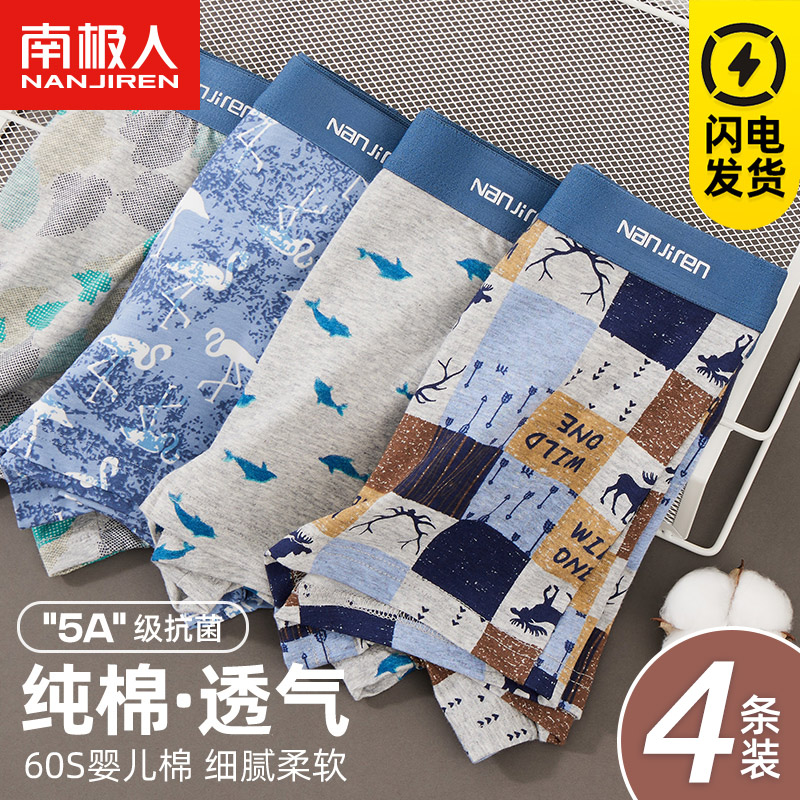 【产品名称:南极人男士内裤纯棉抗菌平角裤男生男款运动四角裤大码裤衩青少年】
