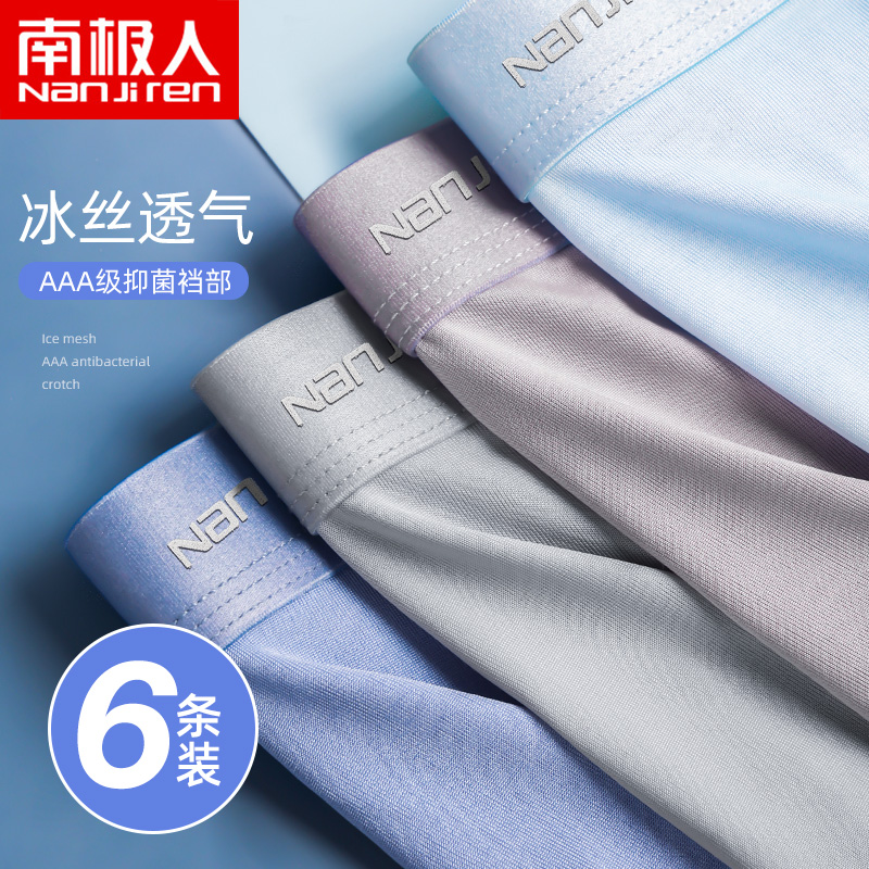 【产品名称:南极人男士内裤男冰丝抗菌夏薄款网眼透气无痕平角大码四角底裤头】