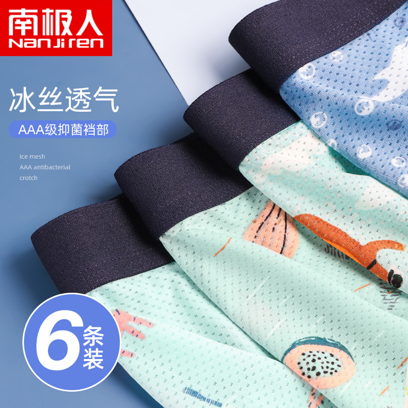 【产品名称:南极人冰丝无痕男士内裤网眼透气平角抗菌运动大码中腰四角短裤头】